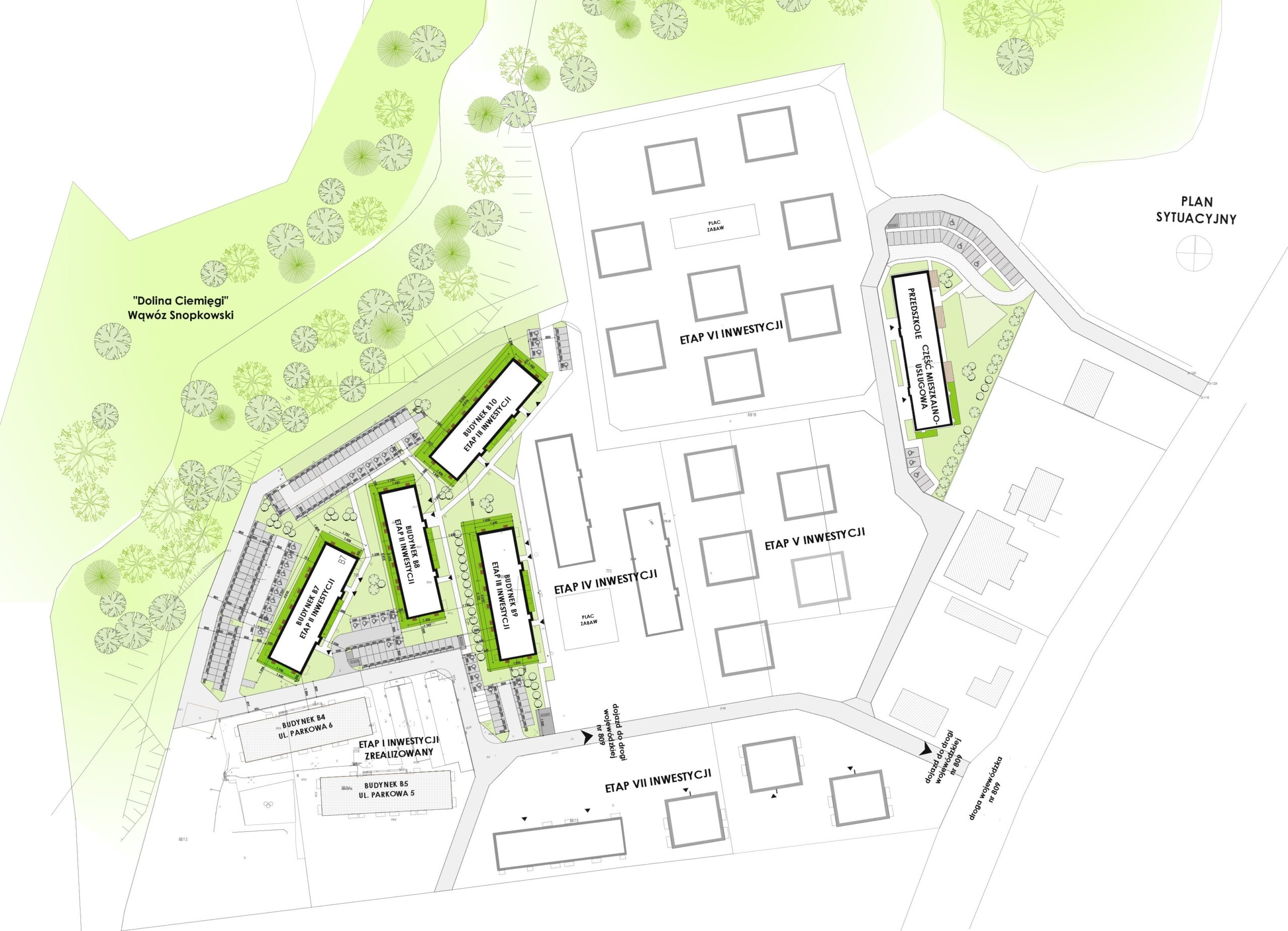 Nie tworzymy tu jedynie zespołu budynków wielorodzinnych. Snopków Park powstaje jako przemyślana, spójna przestrzeń – małe, samowystarczalne miasteczko w sercu Doliny Ciemięgi. Miejsce, w którym codzienność zwalnia, a wszystko, co potrzebne do wygodnego życia, znajduje się blisko domu.